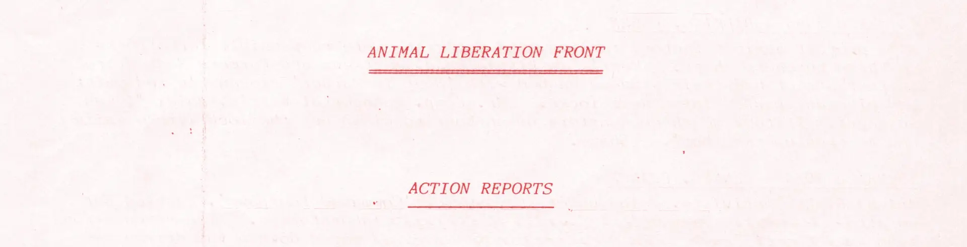 ALF Action Reports 1983-1984 (UK) March 15, 2026March 5, 2026 by admin Between 1983 and 1984, there was so much Animal Liberation Front activity that, in addition to the ALF SG newsletter, the ALF also put out regular lists of its operations. Issue 1 - 1983 Issue 2 - 1984 Issue 3 - 1984 Issue 4 - 1984 Issue 5 - 1984 Issue 6 - 1984 Issue 7 - 1984 Issue 8 - 1984 Issue 9 - 1984 Issue 10 - 1984 Issue 11 - 1984
